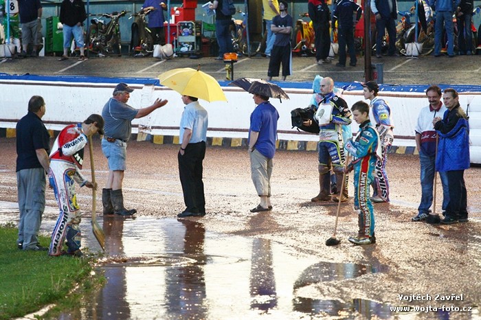 Čtvrteční mšenské extraligové klání nabídlo vskutku zajímavou podívanou. Dva použité žolíky a především proudy vody padající z nebes měly na vývoj utkání rozhodující vliv. Podívejte se spolu s námi na několik fotografií Vojtěcha Zavřela.