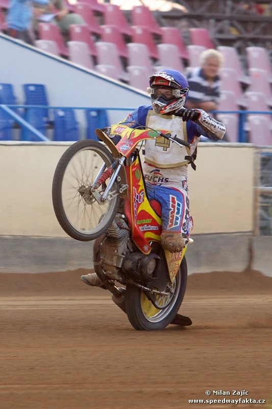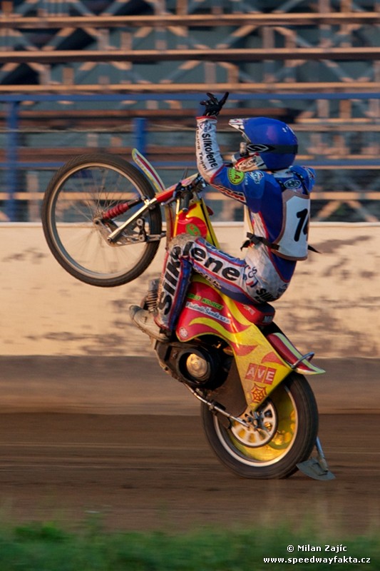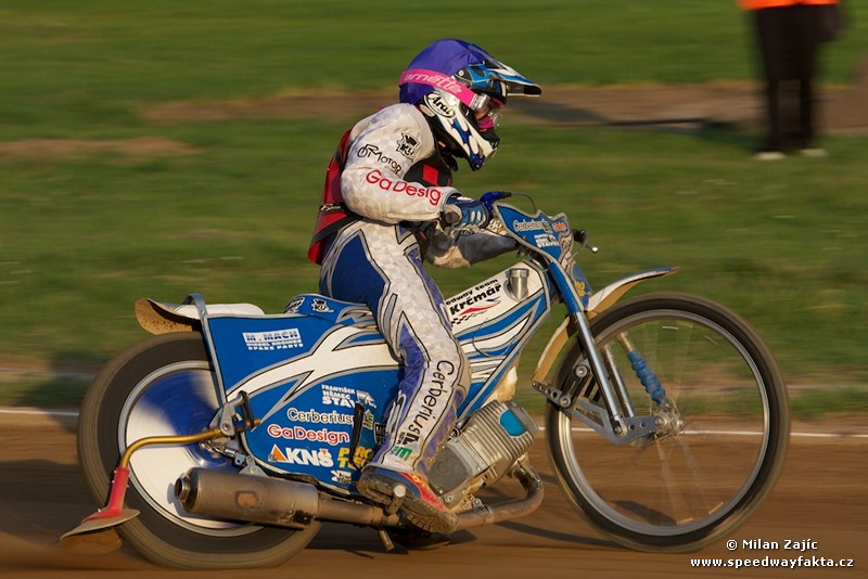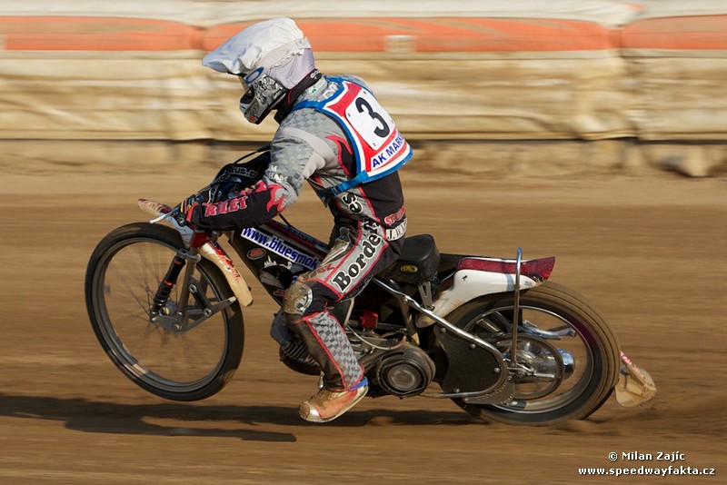 milik-vaclav.jpgVáclav Milík: V první jízdě jsme to měli špatně zpřevodovaný, byly muldy na venku a měl jsem problém to ukočírovat. Tak jsme dali lehčí převod, z toho vznikly lepší starty a dařilo se až do konce. Měli jsme tam 58, dali jsme 57, jak tu dráhu uvláčeli, tak na venku byl materiál a byl takovej plynulej, dobrej, že to nikde nekopalo. Jelo to tam a jsem rád, že jsem vyhrál. Jsem mistr republiky, loni mi to sebral Holoubek, což mě štvalo, a teď jsem to udělal, tak mám radost.