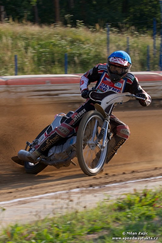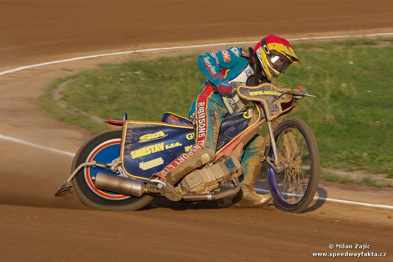 smetana.jpgOndřej Smetana: Ze začátku na nic, ale pak už jsem to vyladil. Já jsem jel dneska úplně poprvý na GMu a na tom se jede úplně jinak, ale na konci už mi to šlo. Je to na startu mnohem lepší než JRM. Na začátku jsem se hodně pral právě s tim motorem. Dráha byla ze začátku hlubší, občas nějaká dírka, ale ke konci už byla tvrdá, dobrá.