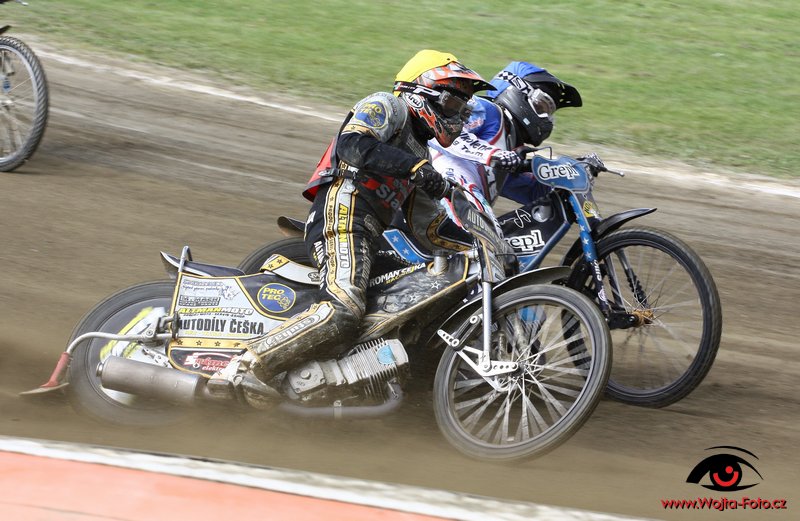 FOTOREPORTÁŽ UVNITŘ – Velmi důležitý závod letošního ročníku extraligy se jel v úterý 6. července ve Slaném. Domácí Autoklub hostil Zlatou přilbu Pardubice, která by po základní části ráda ukořistila…