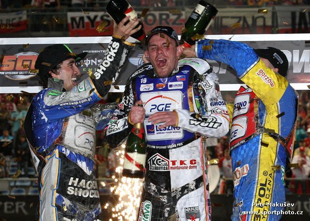 Hurááááááááááááááááááááááááááááááá. Neuvěřitelné se stalo skutkem. To je historický úspěch, který nemá obdoby. Škoda, že Martin nestartuje v celém seriálu GP. Mohl bojovat o titul. Žarnovica má vítěze GP a dokonce nejlepšího jezdce závodu (úžasných 20 bodů) v Polsku, kde domácí jezdí jako z praku. Jistě má z toho radost i Zdeno Vaculík, nejlepší slovenský jezdec ve své době.