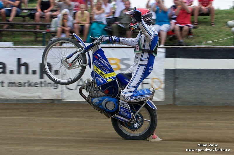 1. Již nikdy více Divišova. Byl jsem tam včera se svou rodinou , dívky 13 a 14 let výška kolem 157 cm a ještě moje matka důchodkyně 68 let. Včera jsme si udělali výlet a myslel jsem , že by bylo zajímavé svým dcerám a matce ukázat naší speedway. Bohužel pan Trojánek asi neměl svůj den a tudíž všeobecné vstupné na závod ,vyjma dětí do 150cm bylo ve stejné výši 120 Kč bez různých slev jak se stačí podívat do historie Divišovských stránek včetně červnovného MS. Příště již asi nikdy více vypláznul jsem 480 kč a kdyby se dcera netěšila podívat na závod, tak jsem jel na otočku domů. Připadá mne, že v Divišově se naučili stejnému chraplounství jak kdysi v Olympu, kde již naštěstí zmoudřeli jak vytáhnout z lidí prachy. Jak říkám včera jsme se těžce spálily a Divišov nikdy více. PS: možná p. Trojánek odpoví, když se nám to nelíbí tak at sedíme doma.Odpovím asi ano, vyjde to levněji benzín a cesta( o tom vůbec nemluvím) a 2 děti dívky a jedna paní seniorka včetně mne si již obrázek o přístupu k fanouškům udělali své a různé vyjadřující žvásty činovníků je nejenom pro mne a pro ostatní prázdné mlácení slámy, které neberu na vědomí proč to nejde.