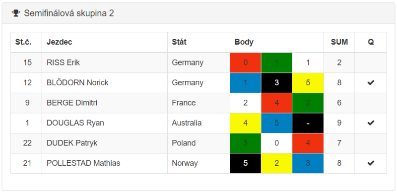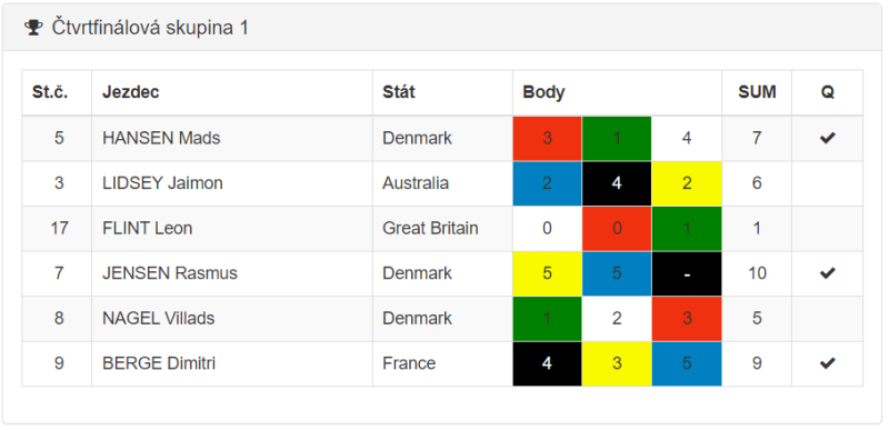 Vítězem 76 ročníku Zlaté přilby města Pardubice se stal dánský jezdec Rasmus Jensen. Po startu šel do čela Australan Ryan Douglas, ten však po čtvrtém kole začal ztrácet a do vedení se dostal Jensen. Druhý byl ve velkém finále Polák Robert Chmiel a z bronzové medaile se raduje mladý Nor Mathias Pollestad. Jan Kvěch se do finále neprobojoval hlavně kvůli poruchy na stroji v první semifinálové jízdě. Chuť si spravil v malém finále, které vyhrál.