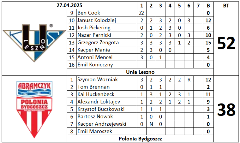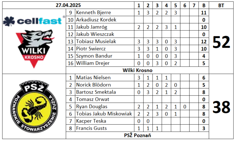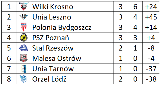Třetí kolo měli na programu i týmy ve druhé polské soutěži. Dva závody se sice přesunuly na 3 a 4 května, ovšem dva se odjely a oba dopadly stejným výsledkem 52:38. V prvním z nich Leszno doma porazilo Bydgoszcz před nabitým stadiónem (14500 diváků) a ve druhém Krosno porazilo Poznaň. Ve vedení je bez jediné prohry Krosno.