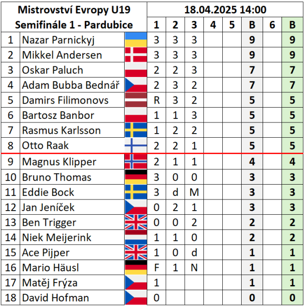V Pardubicích se bojovalo o osm postupových míst do finále Mistrovství Evropy U19. O postupu nakonec vinou počasí rozhodlo jen nutných dvanáct jízd pro uznání výsledků. Vítězem se stal do té doby neporažený Ukrajinec Nazar Parnickij, druhý byl Mikkel Andersen a bronz bral Oskar Paluch z Polska. Mezi postupovou osmičku se vešel i Adam Bubba Bednář, který skončil čtvrtý, když o jeho pořadí rozhodla jen vzájemná jízda z Paluchem. Honza Jeníček vybojoval tři body a to bohužel na postup nestačilo.