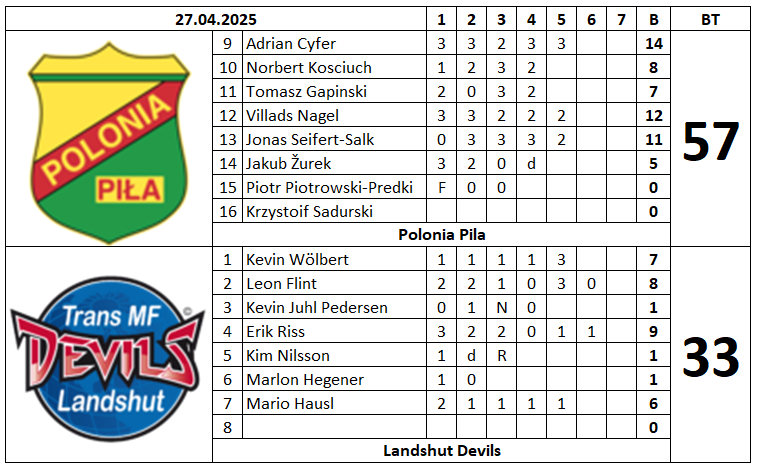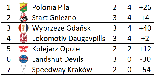 Kompletní třetí kolo má za sebou i nejnižší polská liga. Ve všech závodech kralovaly domácí týmy. Daugavpills jen velmi těsně 46:44 porazili Gniezno, Vedoucí tým tabulky Polonia Pila si lehce poradila s německým Landshutem a v posledním závodě Gdaňsk sestřelil vysokým výsledkem nováčka v soutěži Speedway Kraków 65:25. V tabulce je ve vedení Polonia Pila.