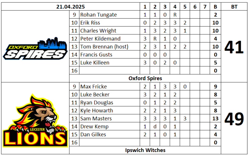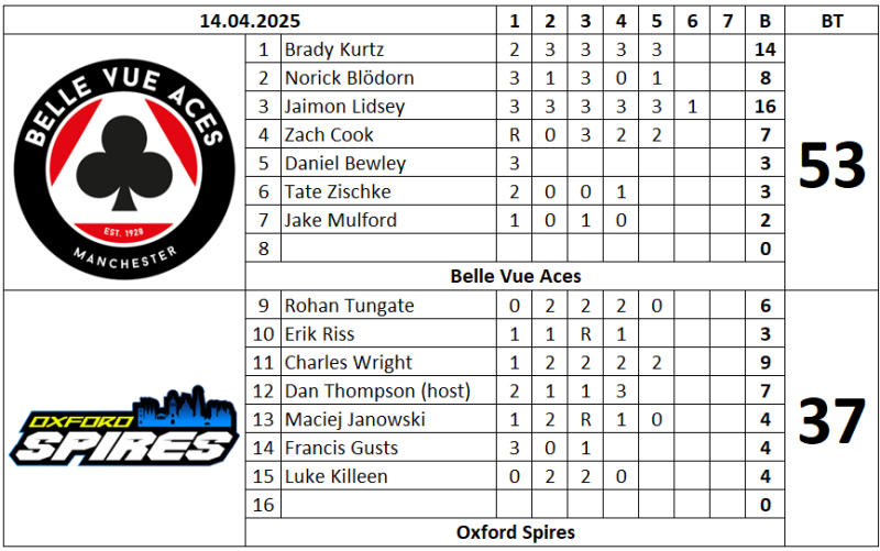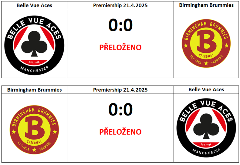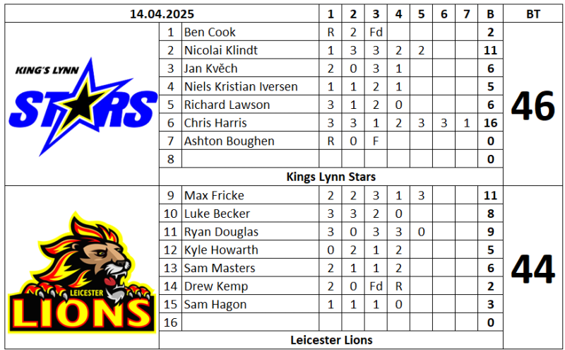 Tři závody se odjely v minulém týdnu v britské Premiership. Ke slovu se dostal znovu i Jan Kvěch, který v závodě svých Stars proti Leicester Lions vybojoval šest bodů a jeho tým velmi těsně vyhrál 46:44. Dále pak Belle Vue porazilo Oxford 53:37 a z vítězství se radovali jezdci Ipswiche, kteří porazili rovněž Leicester 49:41. Boje v nejvyšší britské lize byly na programu i na velikonoční pondělí, ovšem ze čtyř plánovaných se jelo pouze utkání Oxfordu proti Leicesteru a v něm měli navrch Lions.