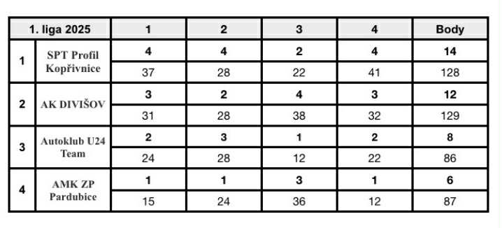 Konečná tabulka 1. ligy družstev 2025